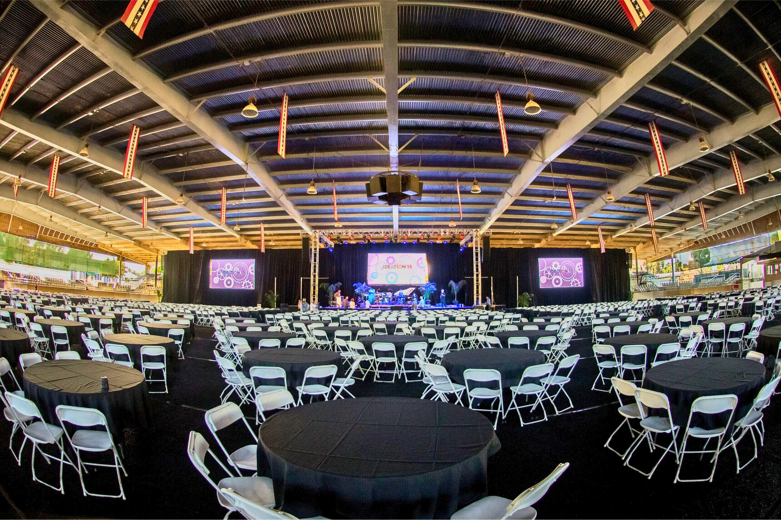 Discover the iconic Equidome, originally built for the 1984 Olympic World Games. Spanning 45,000 square feet with a high vaulted roof and permanent seating for 3,500, this semi-enclosed arena captures the grandeur of its Olympic heritage. The vast arena floor accommodates flexible setups for theater-style events or elegant banquets. Features include multiple entrances, a sprawling exterior walkway and patio, conveniently located restrooms, and substantial transformable spectator seating, making the Equidome a premier venue for large-scale events.